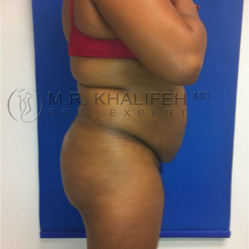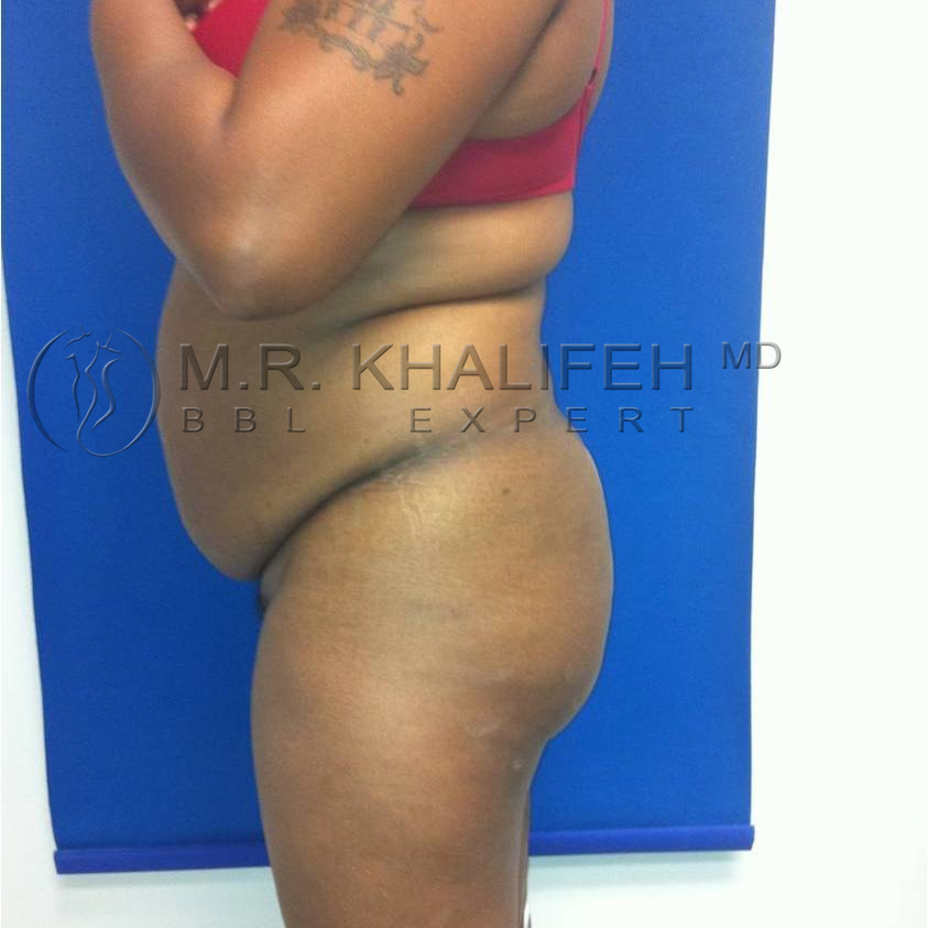 This patient undergone liposuction of the back area with the resultant fat being processed and injected into the buttock region.