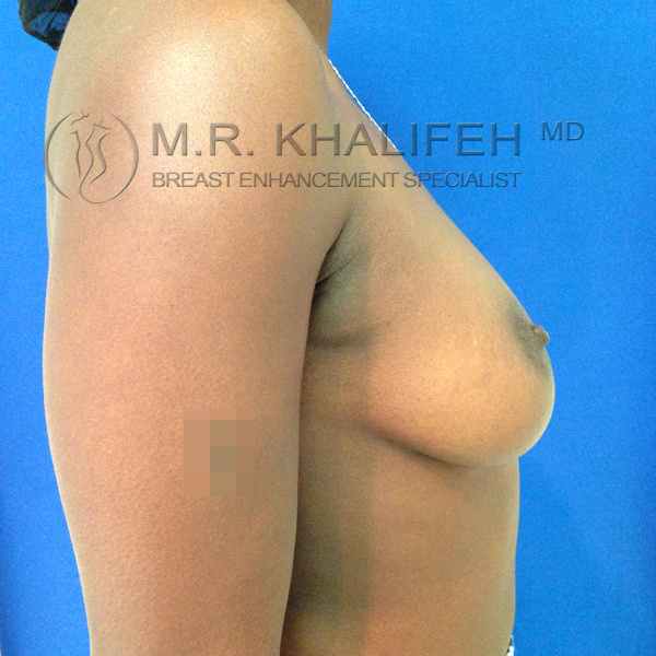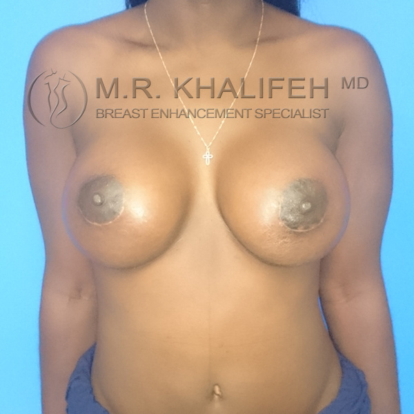 375 cc high profile silicone breast implants placed thru periareolar incisions in African American Patient. Patient is 5″1, 108lb.
