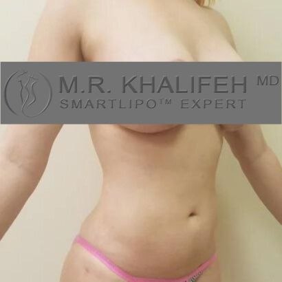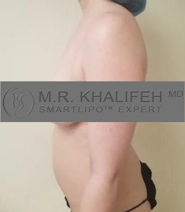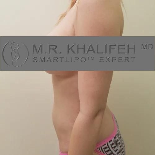 5’3 and 130 lbs at start of surgery. This patient had liposuction abdomen, back, flanks and 500 cc fat graft to buttocks. 375 cc moderate plus breast implants plus breast lift