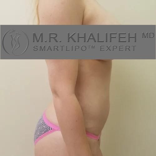 5’3 and 130 lbs at start of surgery. This patient had liposuction abdomen, back, flanks and 500 cc fat graft to buttocks. 375 cc moderate plus breast implants plus breast lift.
