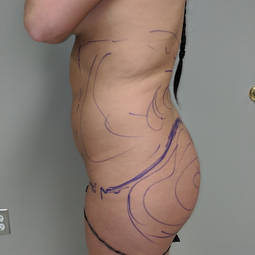 asymmetrical flanks/buttocks rendered much more symmetric with awake lipo and fat graft unilateral right buttock