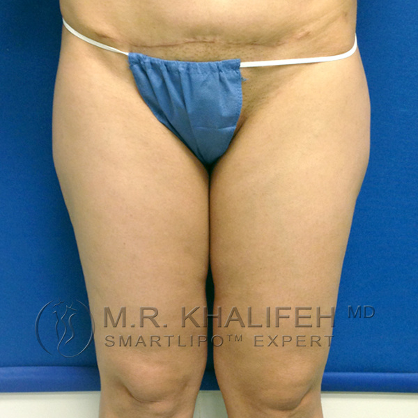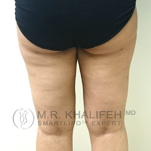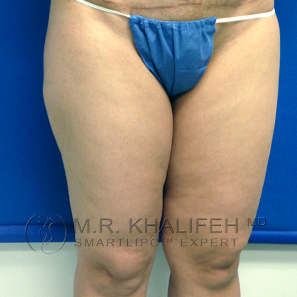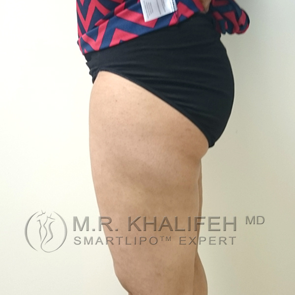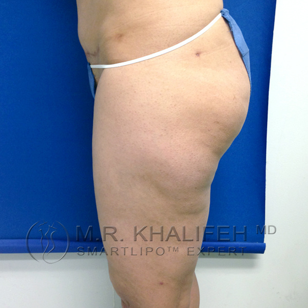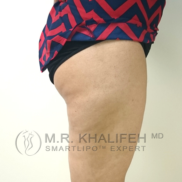 Outer thigh smartlipo with small volume extraction with inner thigh smartlipo. The outer thigh requires a delicate balancing between fat removal and maintaining enough fat to avoid a cellulitic appearance. this was achieved in this case.