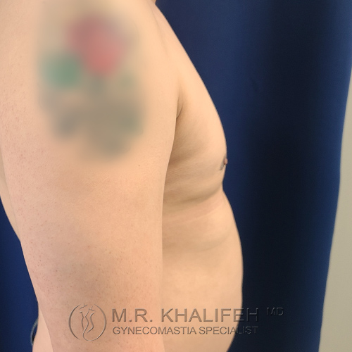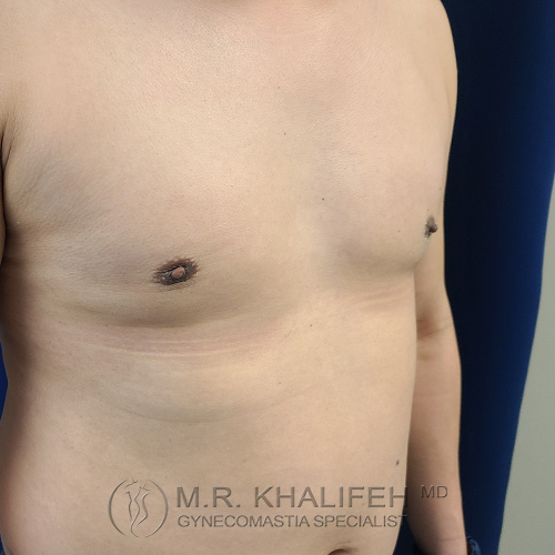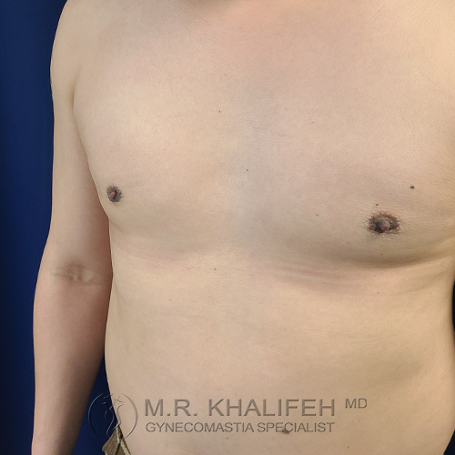 Classic gynecomastia case with some fat tissue sculpted with lipo and gland excision for a much more proportionate look.