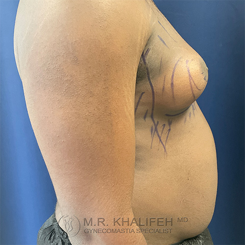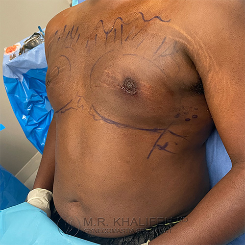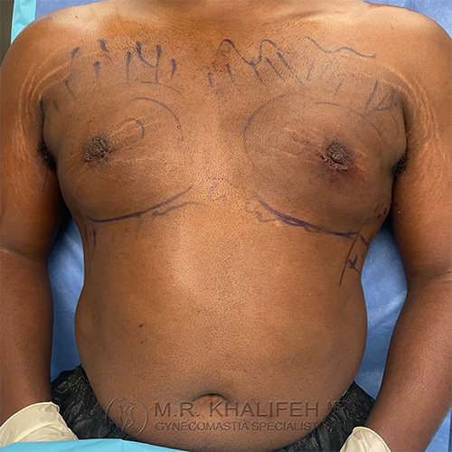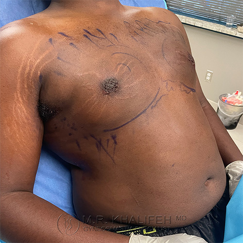 Out of state patient that flew in to do gynecomastia surgery with Dr. Khalifeh. Patient is with long standing gynecomastia. Results shown immediately after surgery.