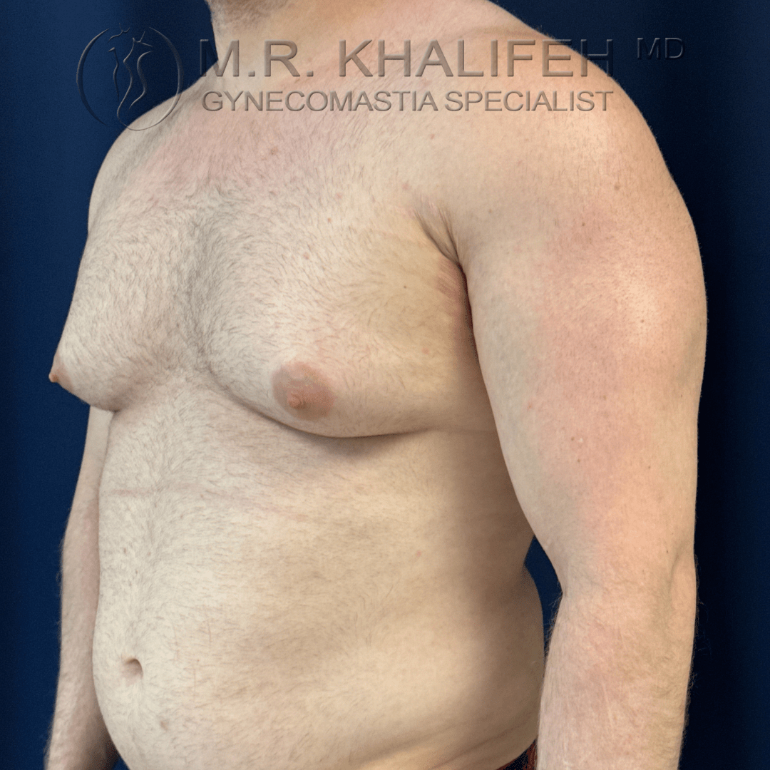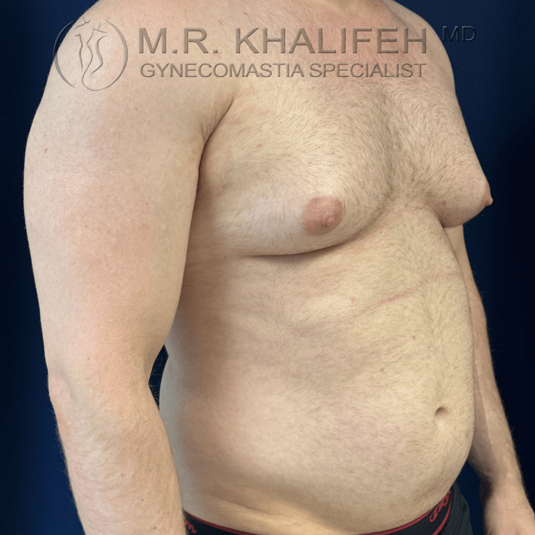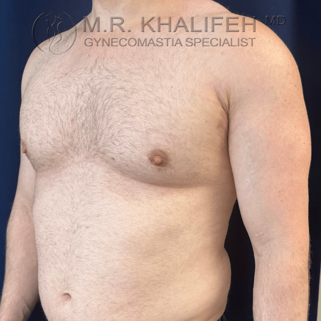 Grade 3 gynecomastia was performed under local anesthesia—results are shown at 2 months postoperatively.