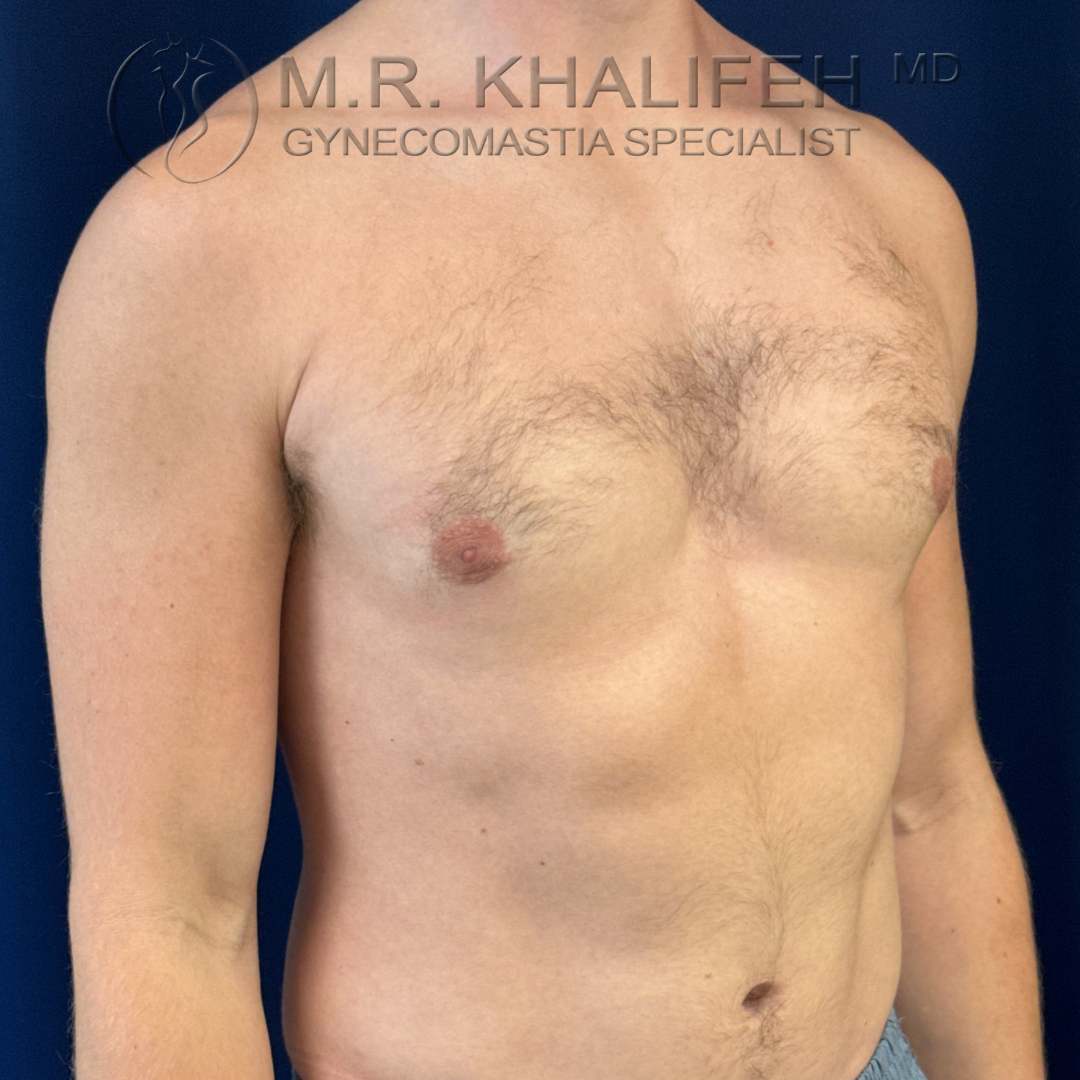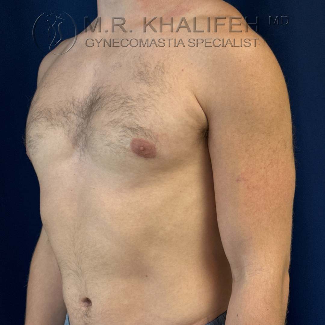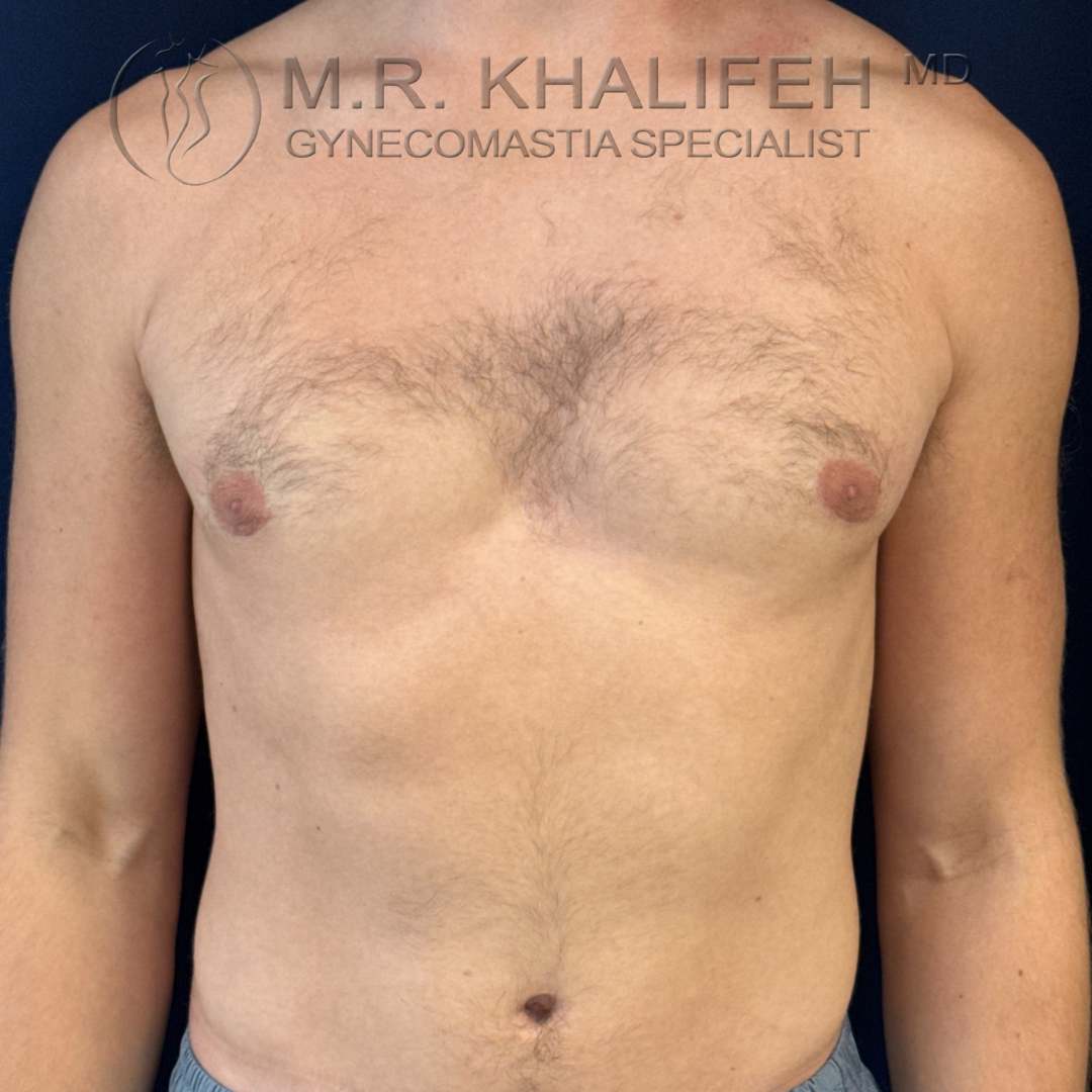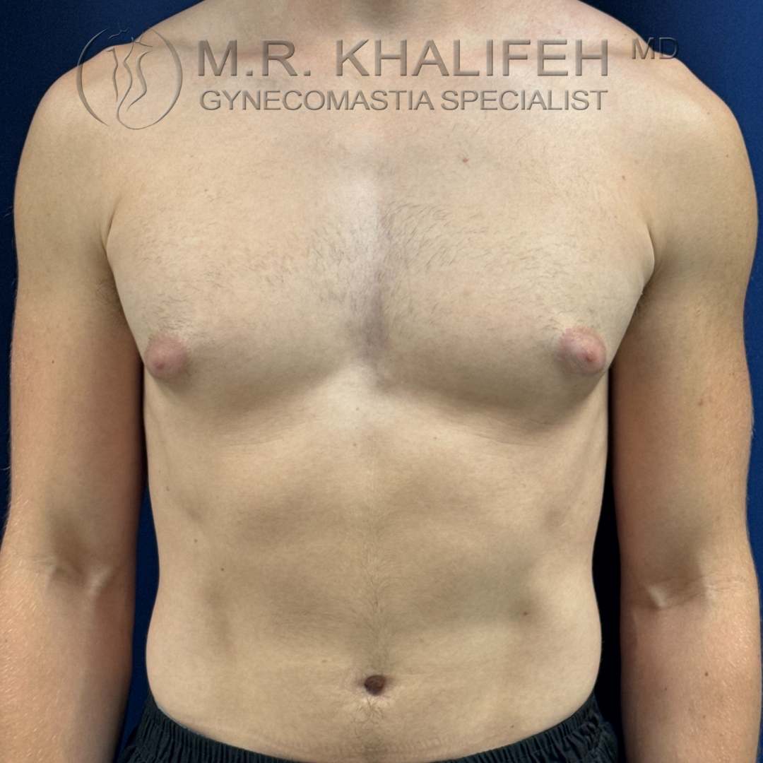 Grade II gynecomastia, causing puffiness of nipples, was excised under local anesthesia. Results shown at 4 months postop.