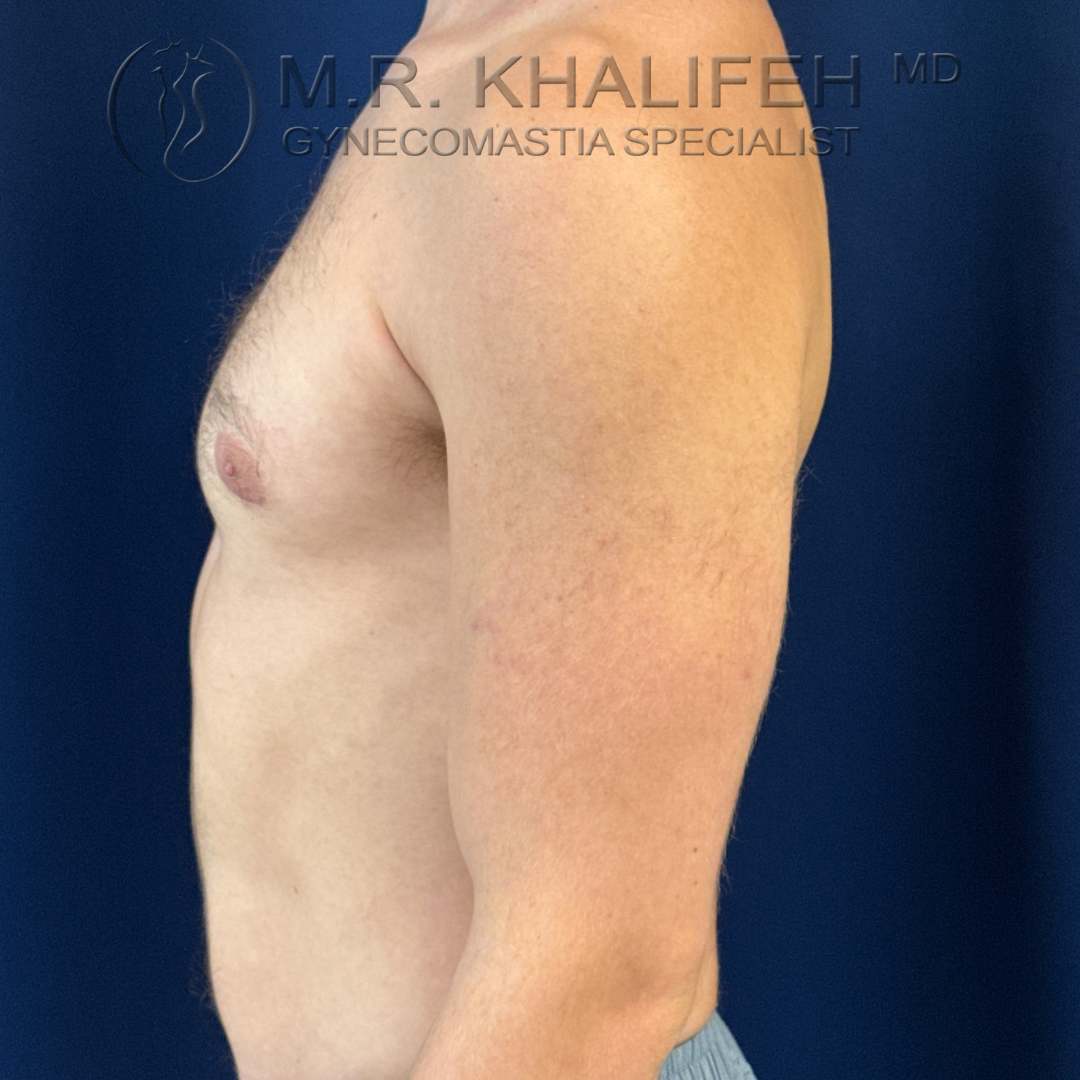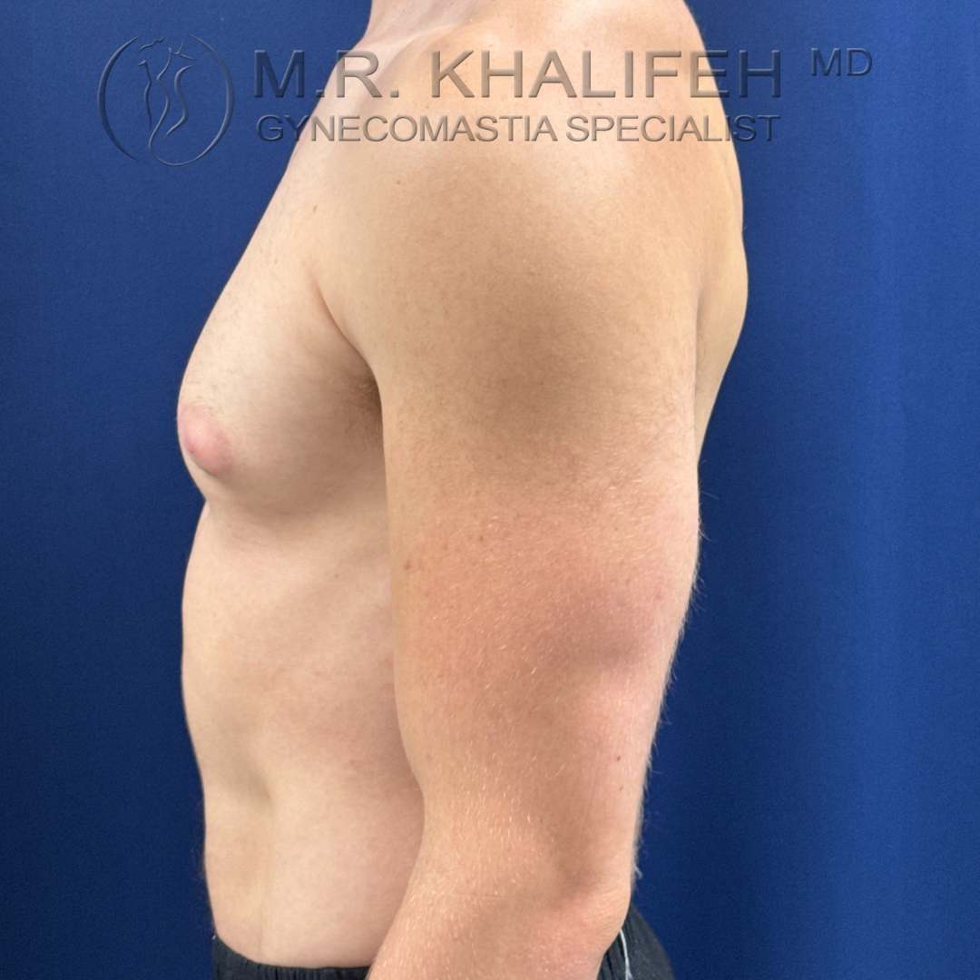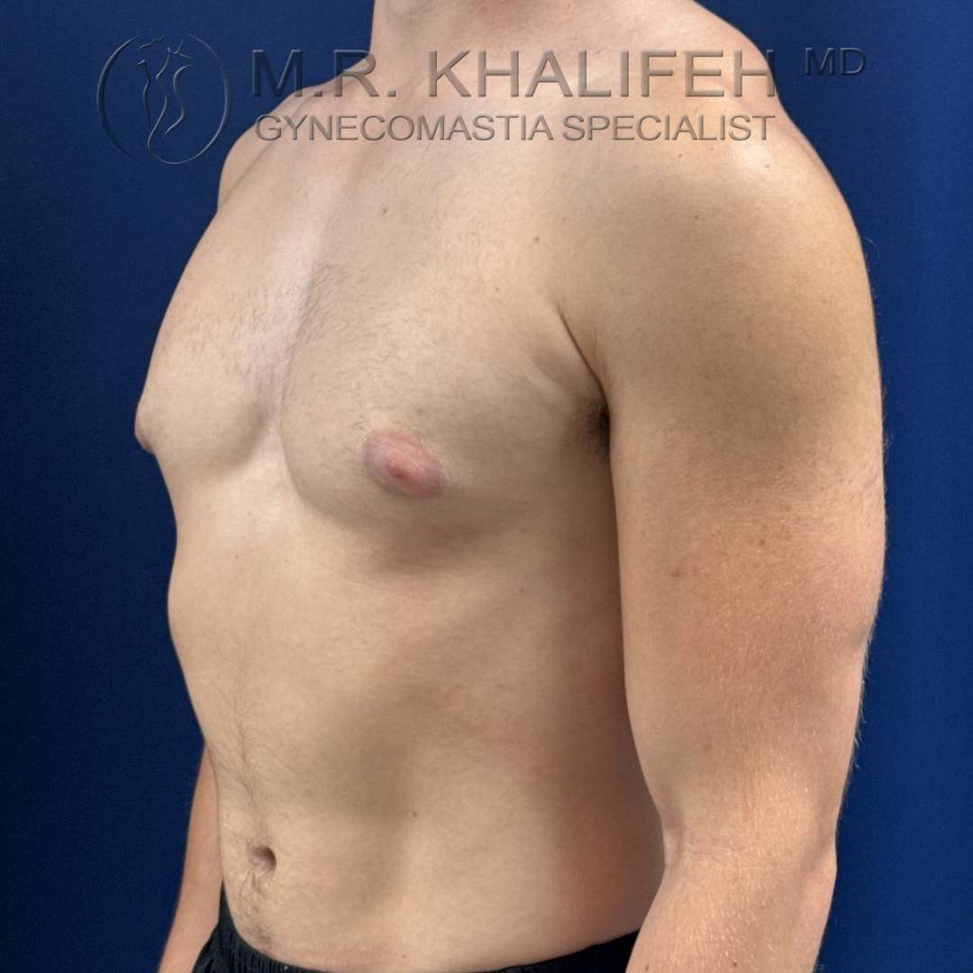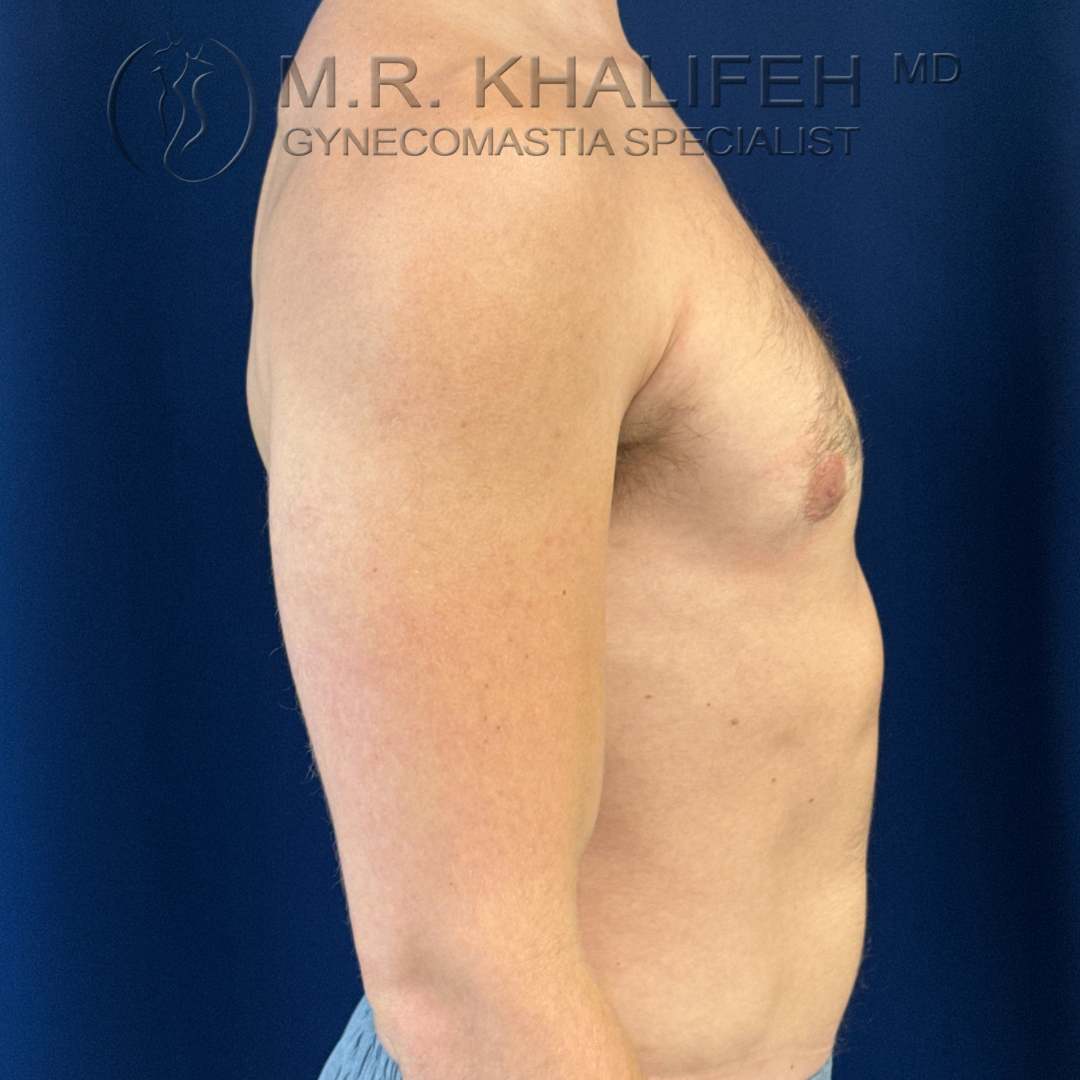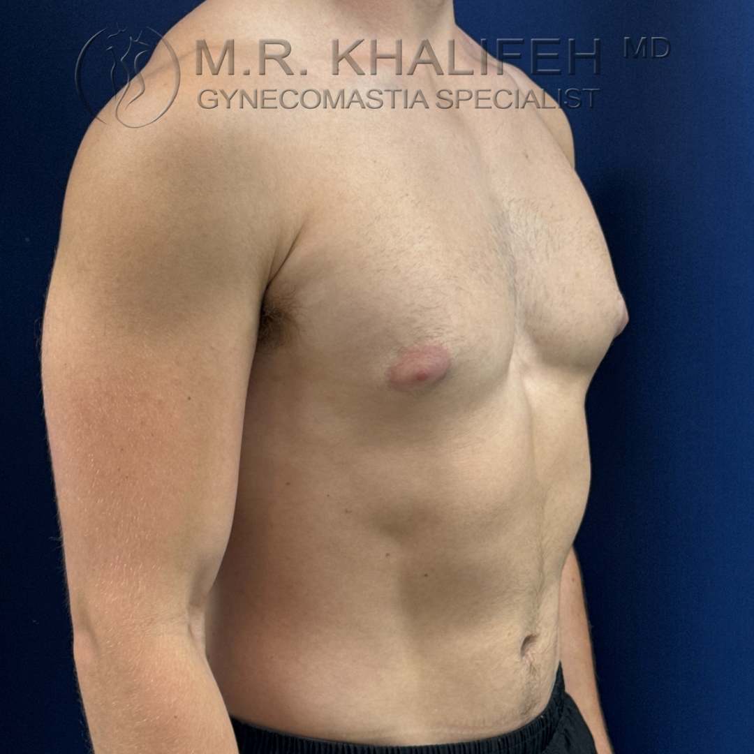 Grade II gynecomastia, causing puffiness of nipples, was excised under local anesthesia. Results shown at 4 months postop.